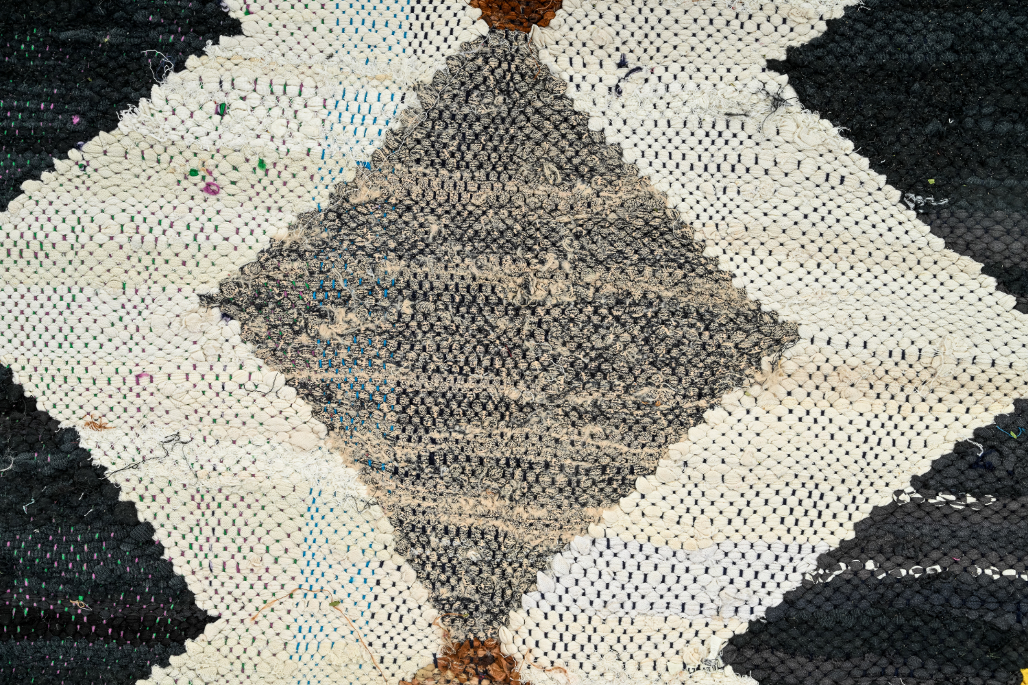 Der Boucherouite-Teppich reiht sich in die fantastischen Teppichkreationen ein, die aus Marokko kommen. Als Flickenteppich wird er aus gebrauchten Textilien wie Wolle, Garn, Kunstfasern und anderen Textilmaterialien hergestellt, die wiederverwertet werden können. Dieser wunderschöne marokkanische Flickenteppich ist das Ergebnis der Veränderungen, die in den letzten Jahren in Marokko auf dem Land stattgefunden haben, wo die herkömmlich nomadische Kultur fester Landwirtschaft und anderen Formen des Broterwerbs gewichen ist. Hierdurch ist die kostbare Schurwolle, das Material der Beni-Ourain- und Azilal-Teppiche, noch seltener geworden. Deswegen ist es umso wichtiger, gebrauchte Textilien wiederzuverwerten. Die marokkanischen Frauen auf dem Land haben hierin unvergleichliche Fähigkeiten entwickelt. Die Farben und das Muster des Boucherouite-Teppichs kennen wir bereits vom Azilal-Teppich. Beide Teppiche sind auf Kunstausstellungen weltweit zu sehen.