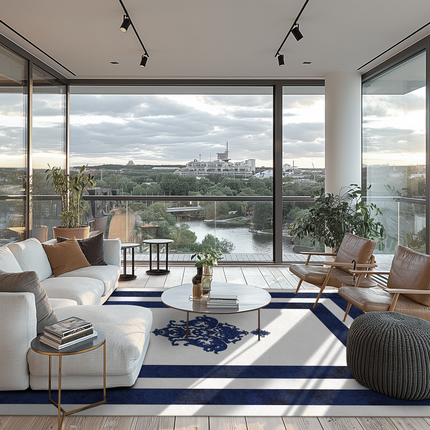 Wilton-Teppich - Soros (blau/weiß)