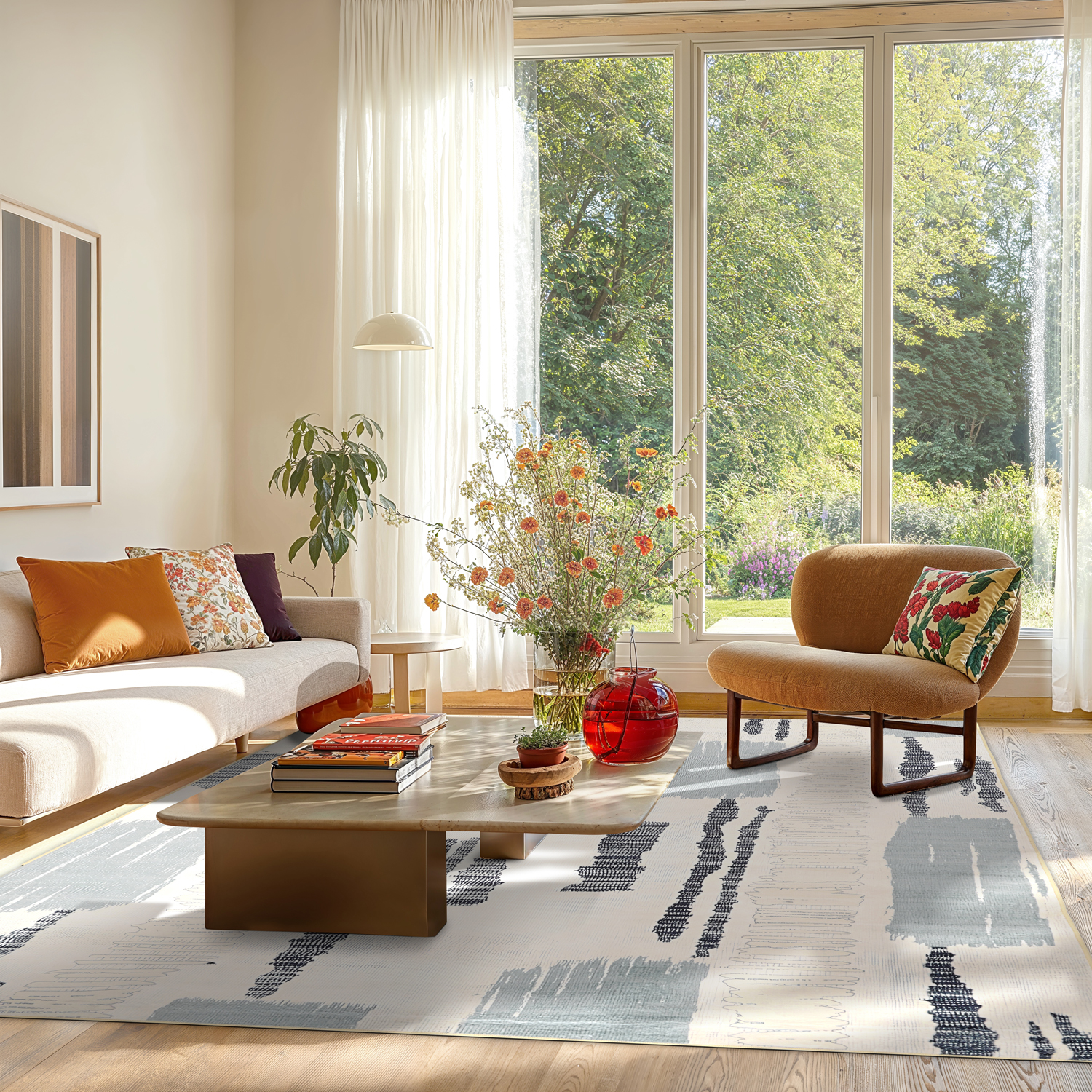 Moderner Teppich aus der Trendcarpet Art Line – jetzt in einer verbesserten Version mit zusätzlicher Dicke und höherem Gewicht, was für ein weicheres und solideres Gefühl unter den Füßen sorgt. Perfekt als Wohnzimmerteppich oder in einem anderen Raum, in dem er Akzente setzen und das Interieur aufwerten kann.