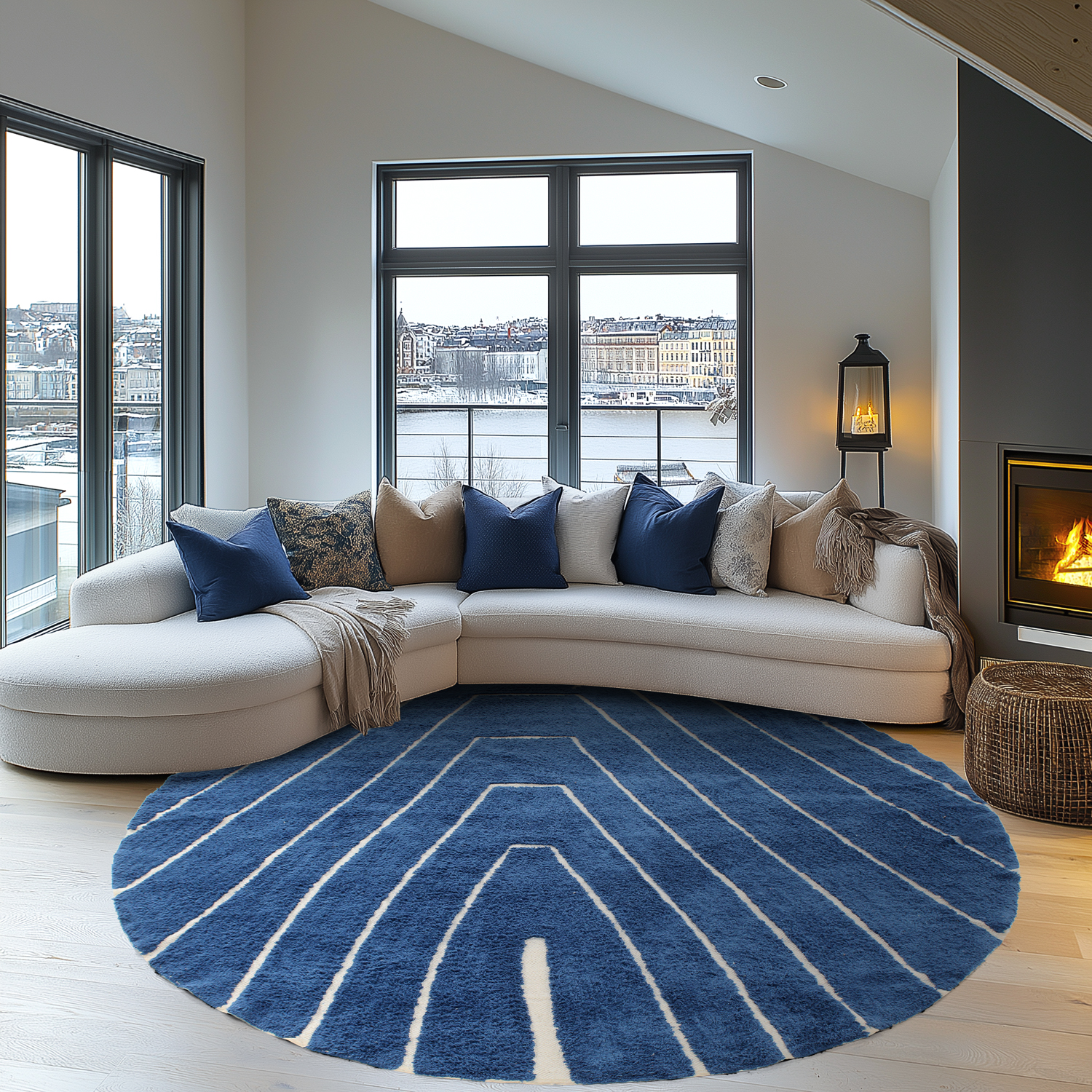 Rund Teppich - Sivia Natural Cotton Shaggy (blau)