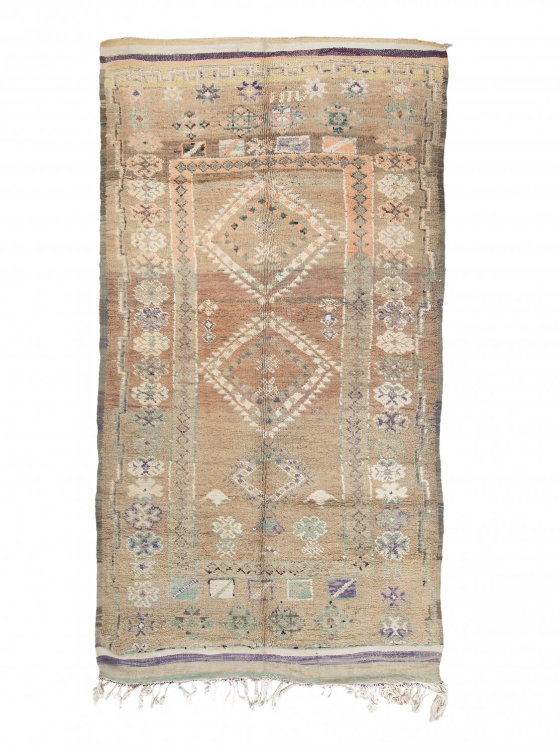 Kreativität und Ausführung, das unregelmäßige Muster und die fantastischen Farbkombinationen – die Geschmäcker sind verschieden. Vermutlich hätte aber kaum jemand etwas dagegen einzuwenden, wenn der Azilal-Teppich zum schönsten Teppich der Welt gekürt würde. Seiner einzigartigen Wirkung kann man sich nur schwer entziehen. Außerdem besteht er zu 100 % aus natürlichen Erzeugnissen. Der weiße/naturfarbene Hintergrund besteht aus der Wolle der Bergschafe und die klaren Farben stammen von wild wachsenden Pflanzen und Beeren der atemberaubenden Bergwelt in der Azilalregion.