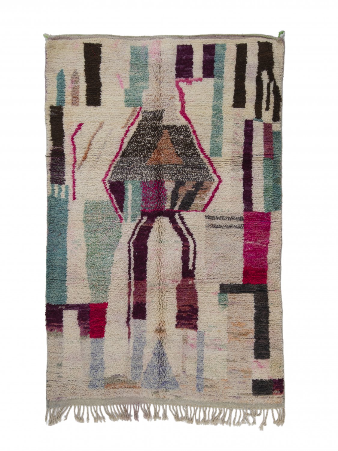 Kreativität und Ausführung, das unregelmäßige Muster und die fantastischen Farbkombinationen – die Geschmäcker sind verschieden. Vermutlich hätte aber kaum jemand etwas dagegen einzuwenden, wenn der Azilal-Teppich zum schönsten Teppich der Welt gekürt würde. Seiner einzigartigen Wirkung kann man sich nur schwer entziehen. Außerdem besteht er zu 100 % aus natürlichen Erzeugnissen. Der weiße/naturfarbene Hintergrund besteht aus der Wolle der Bergschafe und die klaren Farben stammen von wild wachsenden Pflanzen und Beeren der atemberaubenden Bergwelt in der Azilalregion.