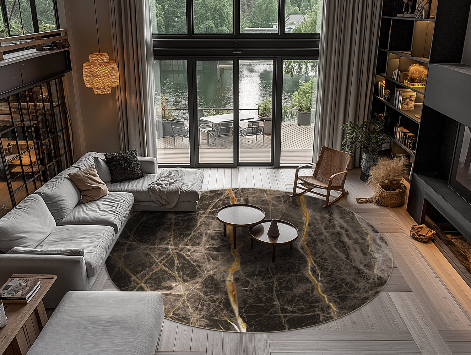 Rund Teppich - Aris (schwarz/gold)