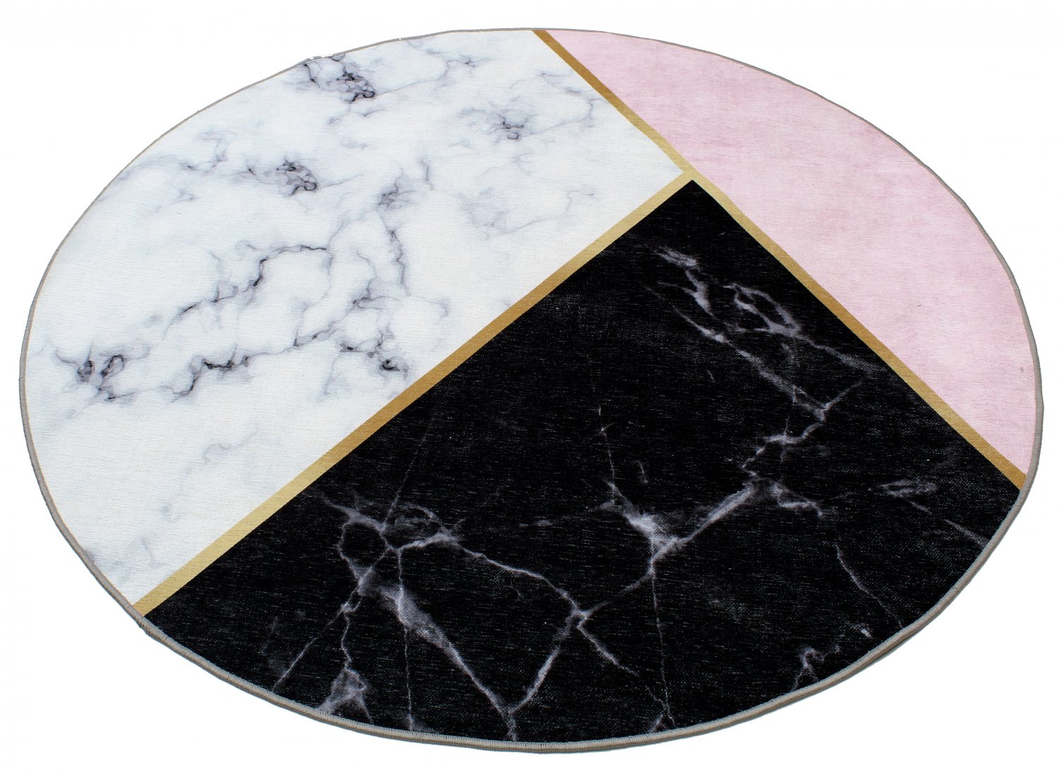 Rund Teppich - Savino (schwarz/weiß/rosa)