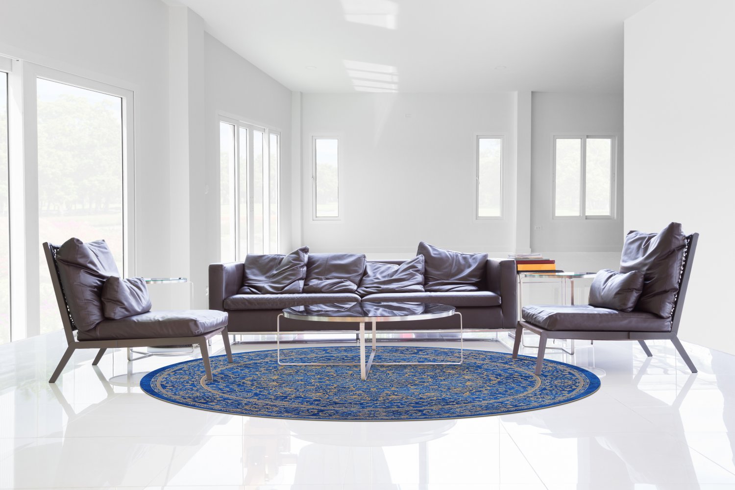 Rund Teppich - Vinadio (blau/gold)