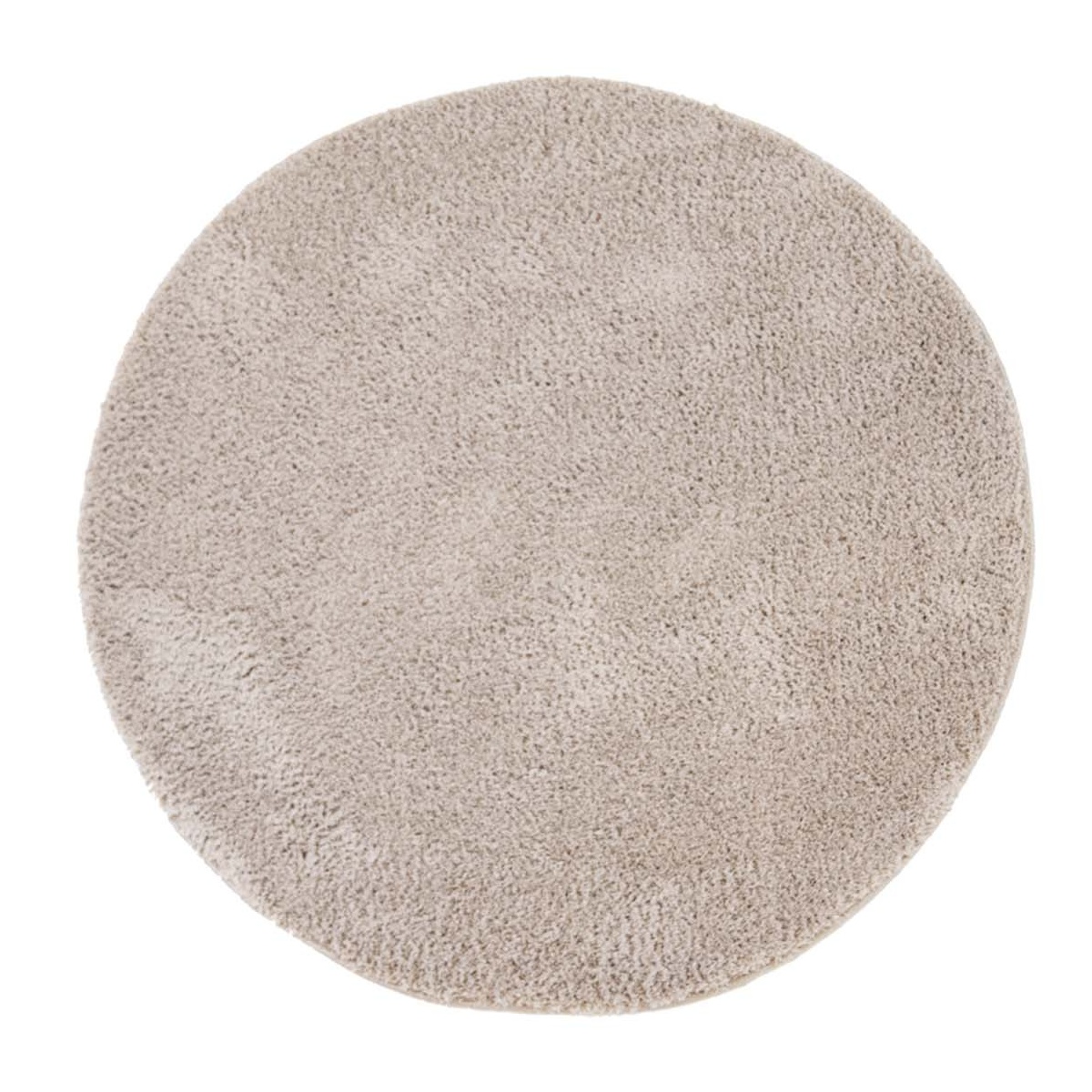 Hochflorteppich mit langem und dichtem Flor, hier in runder Form. Glänzende Fäden wechseln sich ab mit Monochrom, wodurch ein lebendiger und fließender Hochflorteppich entsteht. Lassen Sie Ihre Füße weich und bequem auf diesem wohnlichen Hochflorteppich landen. Der Teppich passt ebenso gut unter das Bett im Schlafzimmer wie als Wohnzimmerteppich oder Kinderteppich. Hier sehen Sie den Teppich in der Farbe Beige.