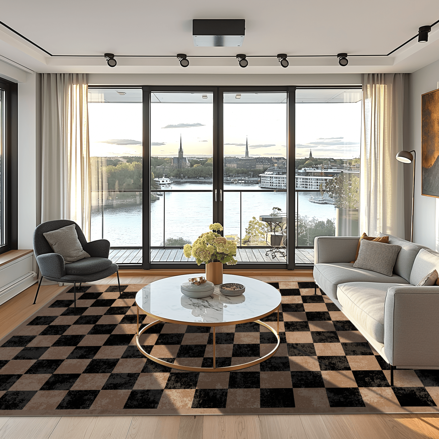 Bitte beachten Sie, dass die Größe der Quadrate je nach Teppichmaßen variieren kann, um ein ausgewogenes Muster zu gewährleisten. Leider können wir keine detaillierten Informationen zu den Abmessungen der Quadrate für jede spezifische Teppichgröße geben.