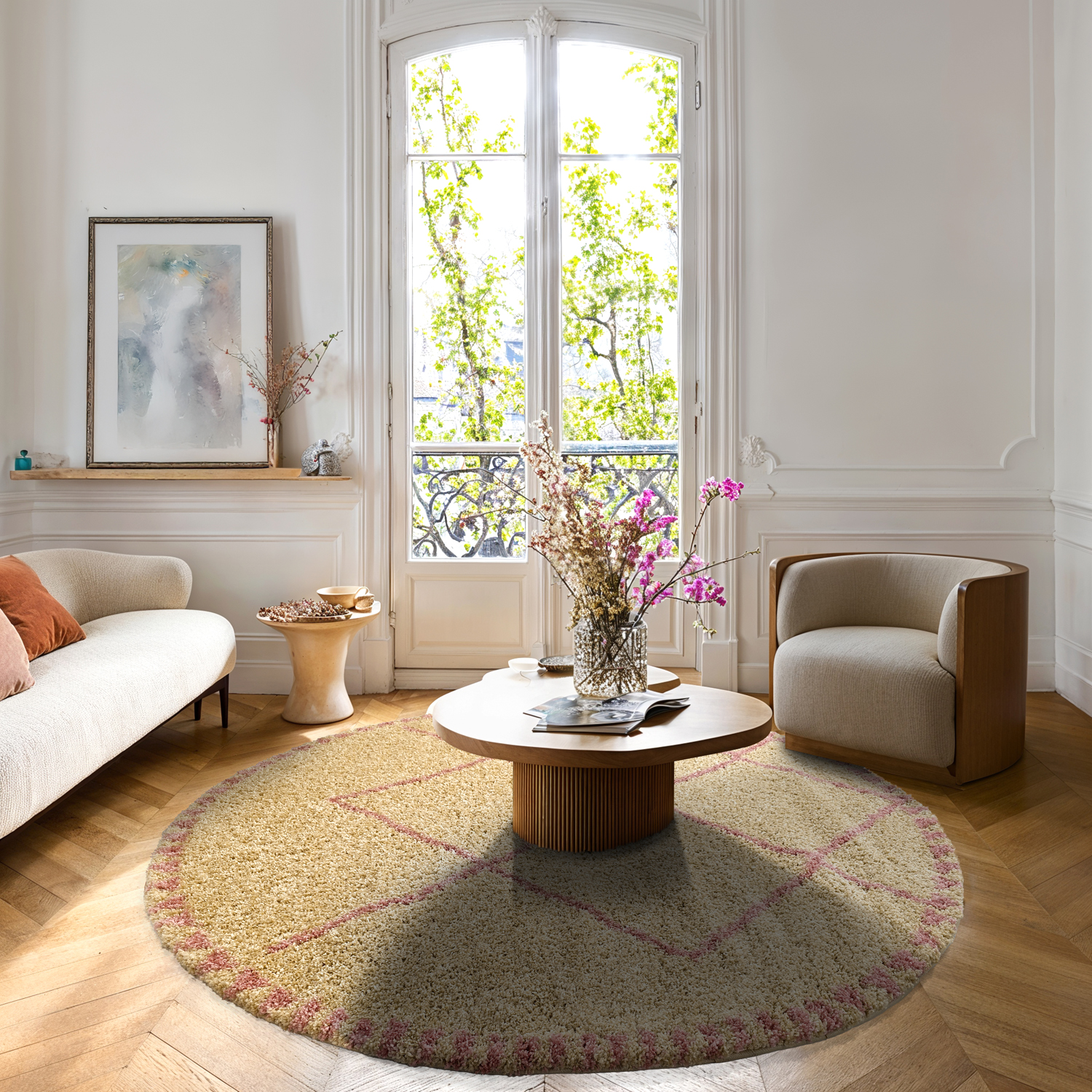 Runde Teppiche - Tiznit (beige/rosa)