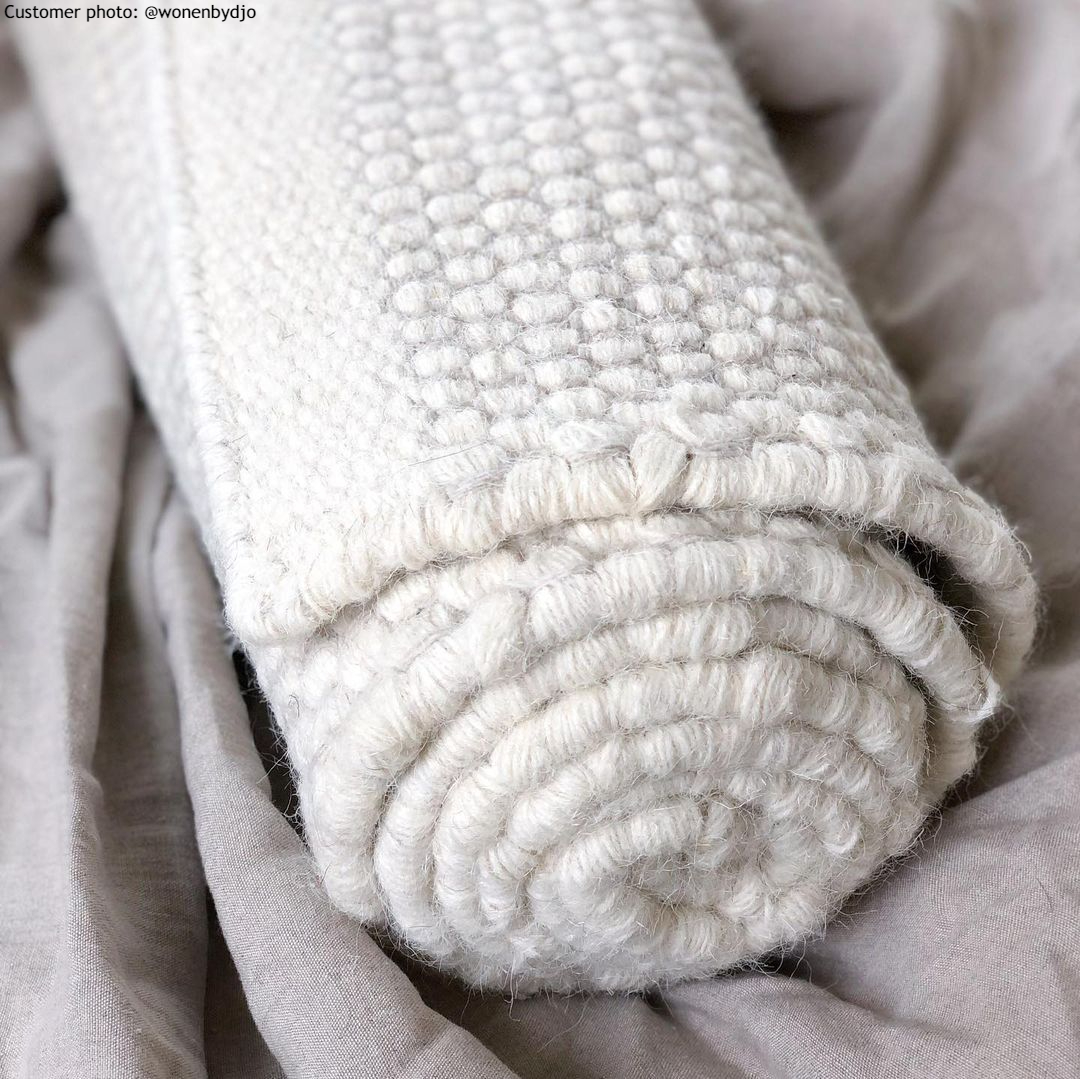Flach gewebter Teppich aus Wolle. Wollteppich mit einem dünnen und schönen Schnitt. Einzigartige Qualität. Leicht zu bewegen. Liegt fixiert und flach auf dem Boden. Vermittelt ein Gefühl der Herkunft.
