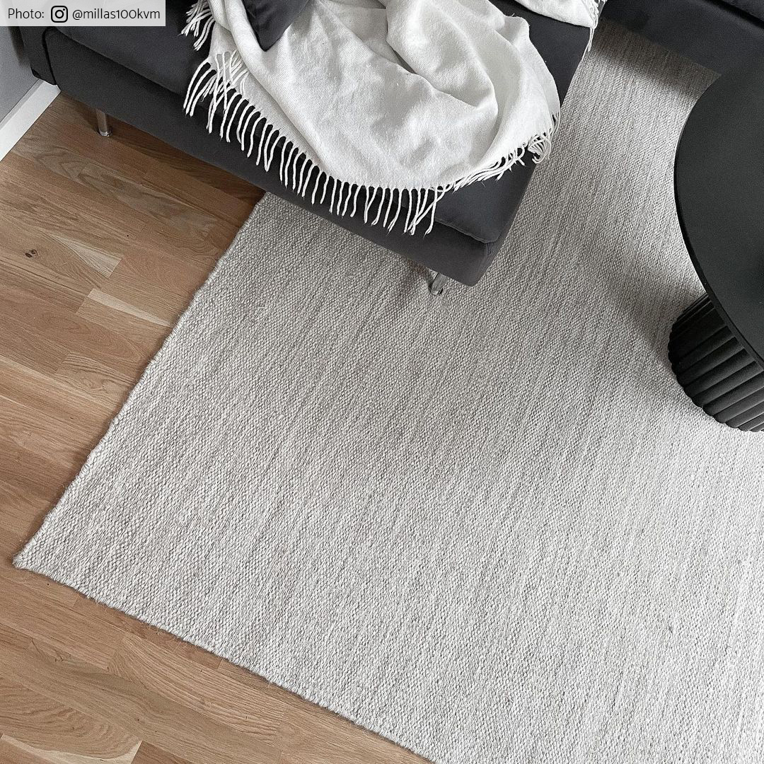Flach gewebter Teppich aus Wolle. Wollteppich mit einem dünnen und schönen Schnitt. Einzigartige Qualität. Leicht zu bewegen. Liegt fixiert und flach auf dem Boden. Vermittelt ein Gefühl der Herkunft.