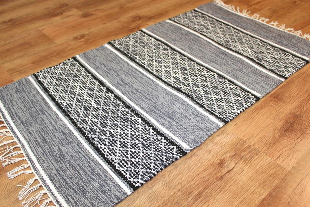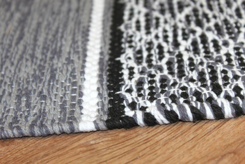 Handgewebter Flickenteppich aus 100 % Baumwolle.