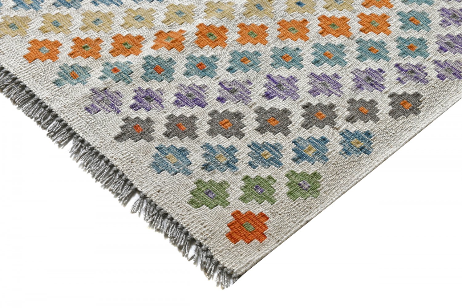 Orientalische Kelim‑Teppiche verbinden eine flachgewebte Struktur mit natürlicher Wolle – leicht, flexibel und einfach unter Tischen, in Fluren oder im Wohnzimmer zu platzieren. Das schlanke Profil eignet sich hervorragend zum Layering über größeren Teppichen.