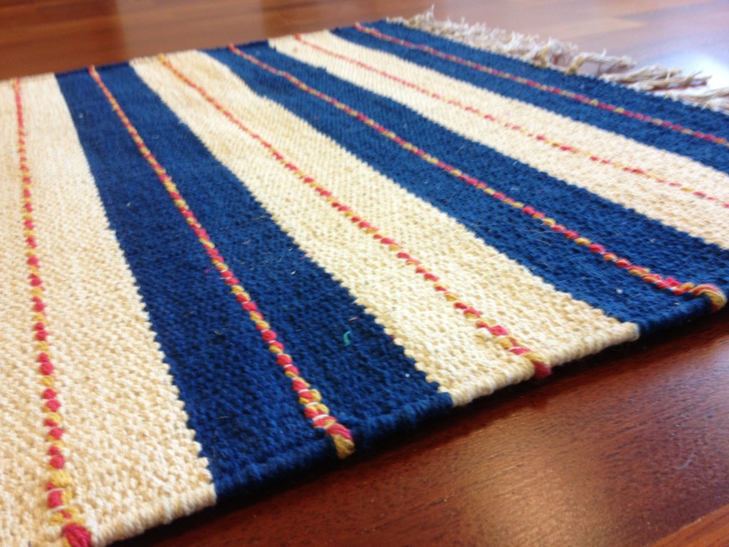 Handgewebter Flickenteppich aus 100 % Baumwolle.