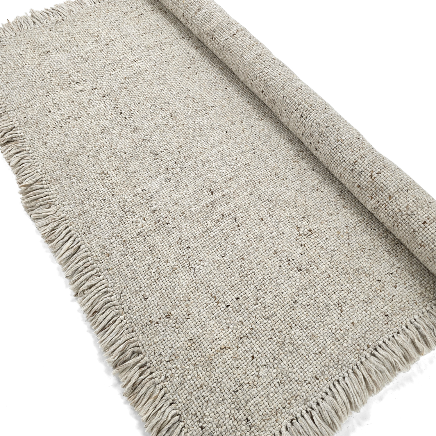 Ein schöner und langlebiger Teppich, gewebt aus Garn, das aus einer Mischung aus Wolle und recyceltem PET gesponnen wurde. Die Kombination sorgt für eine strapazierfähige Qualität mit weichem Gefühl und natürlicher Struktur. Dank der recycelten PET-Faser ist der Teppich eine umweltbewusste Wahl, während die Wolle Wärme und eine exklusive Textur verleiht. Die natürliche Farbe betont die Authentizität der Materialien und macht den Teppich leicht mit jeder Einrichtung kombinierbar.
