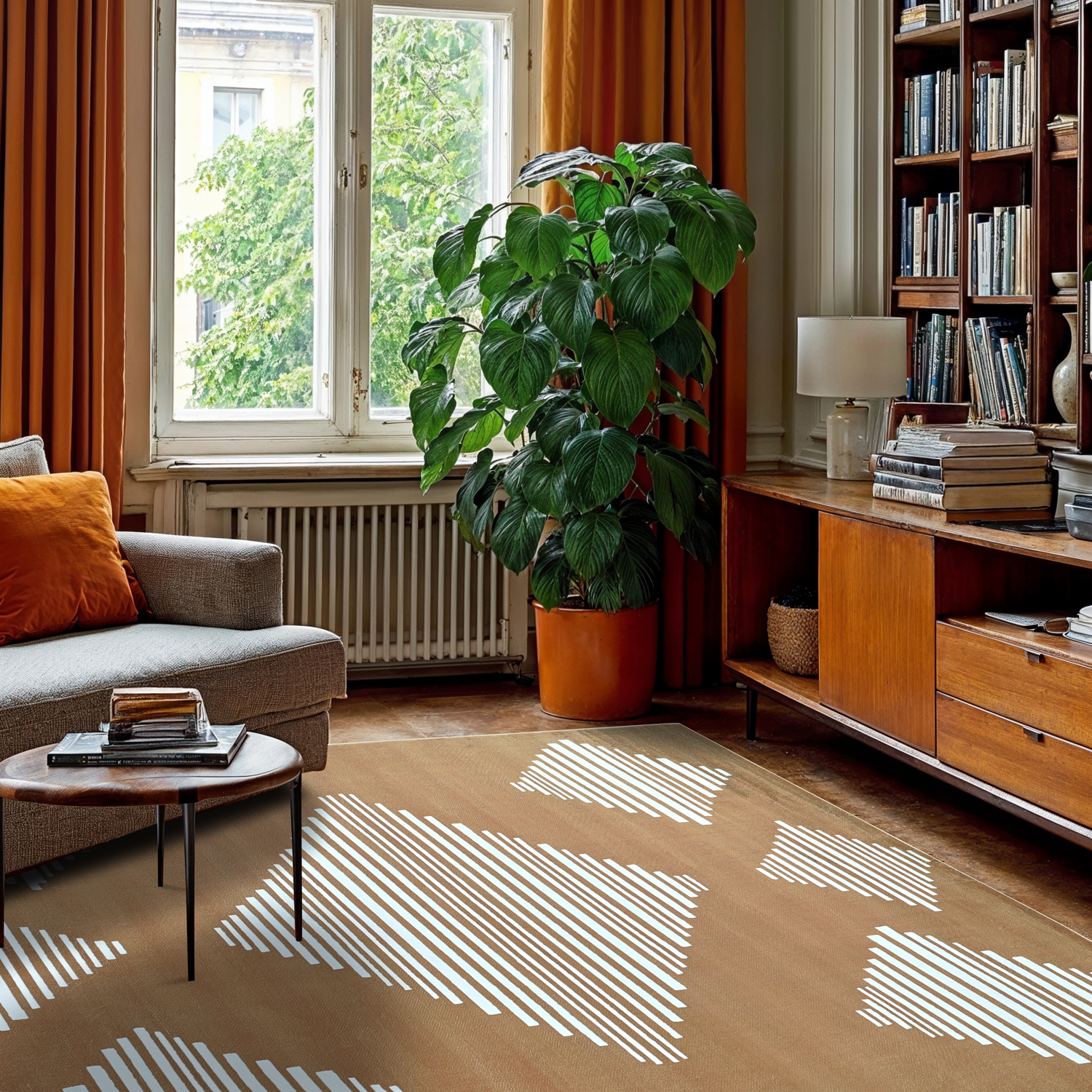 Moderner Teppich aus der Trendcarpet Art Line – jetzt in einer verbesserten Version mit zusätzlicher Dicke und höherem Gewicht, was für ein weicheres und solideres Gefühl unter den Füßen sorgt. Perfekt als Wohnzimmerteppich oder in einem anderen Raum, in dem er Akzente setzen und das Interieur aufwerten kann.