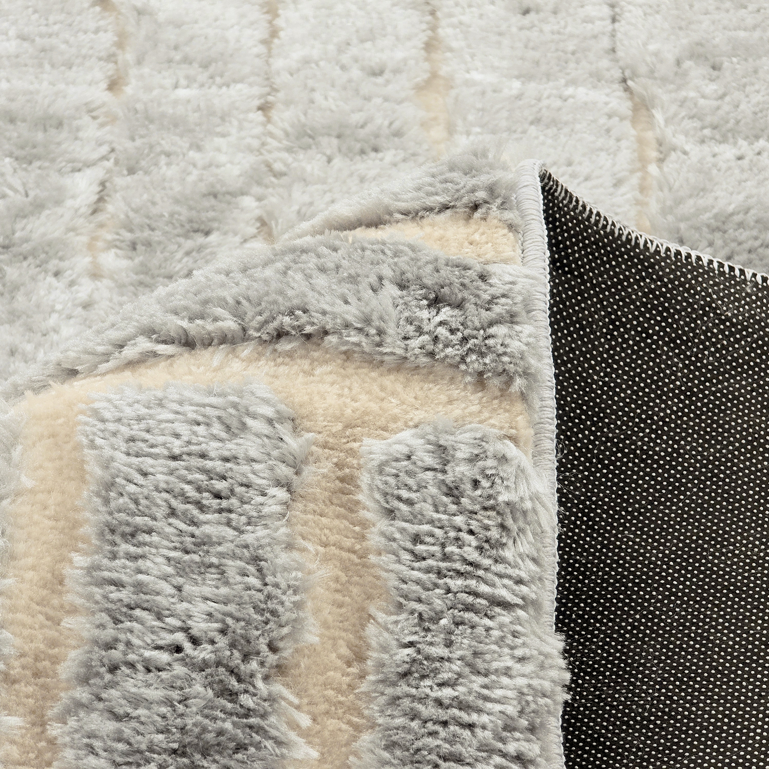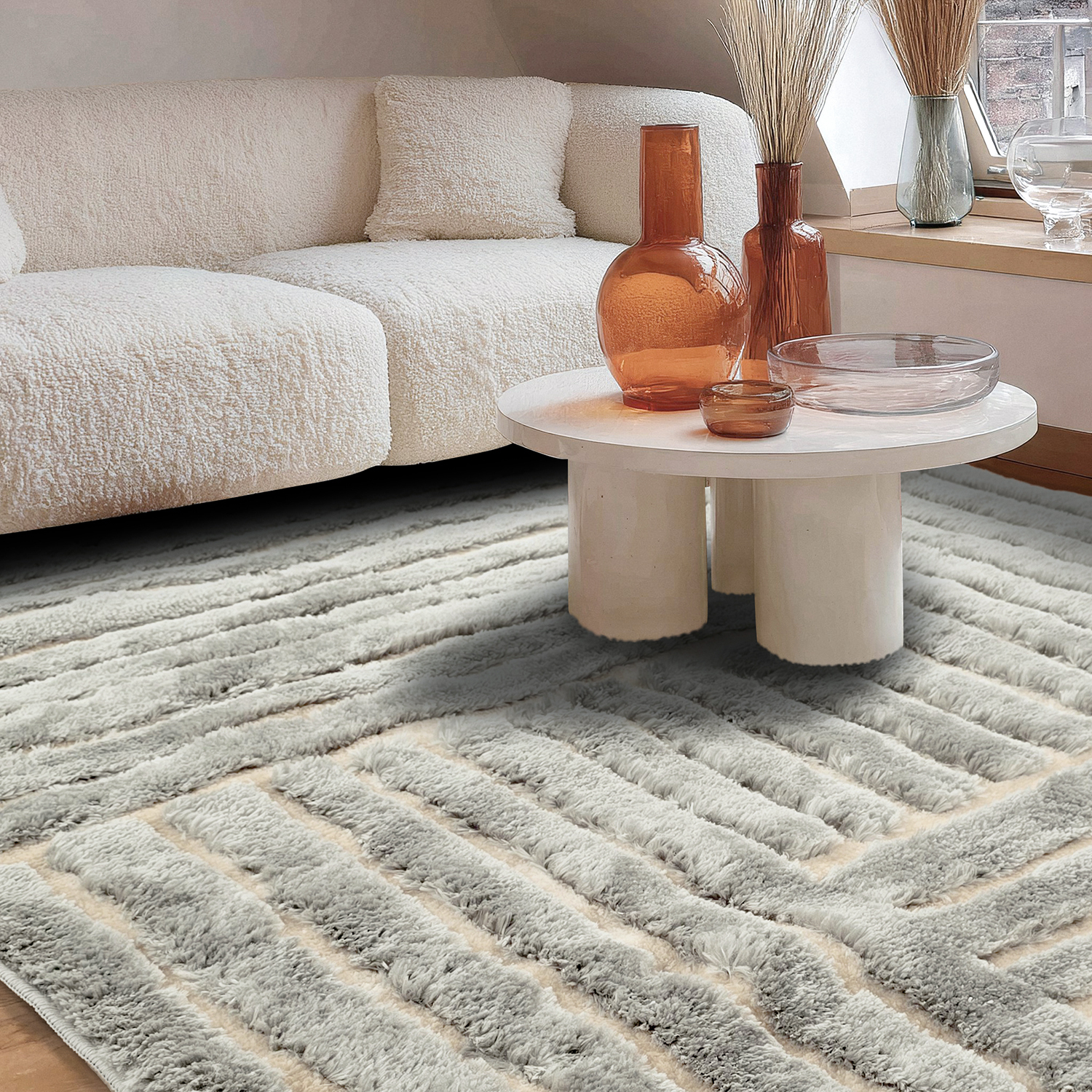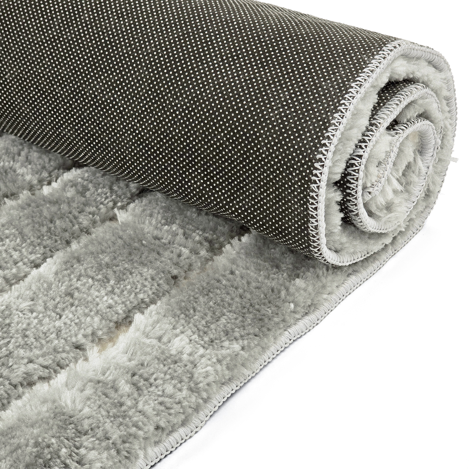 Eleganter Hochflorteppich mit High-and-Low-Struktur, der dem Raum ein modernes und lebendiges Gefühl verleiht. Der Teppich hat einen unterschiedlich hohen Flor, was ihm eine taktile Oberfläche und ein schönes Tiefenspiel im Licht verleiht. Der dichte Flor macht den Teppich weich und angenehm zu begehen, während die niedrigeren Partien das Muster betonen und ihm einen exklusiven Charakter verleihen.
