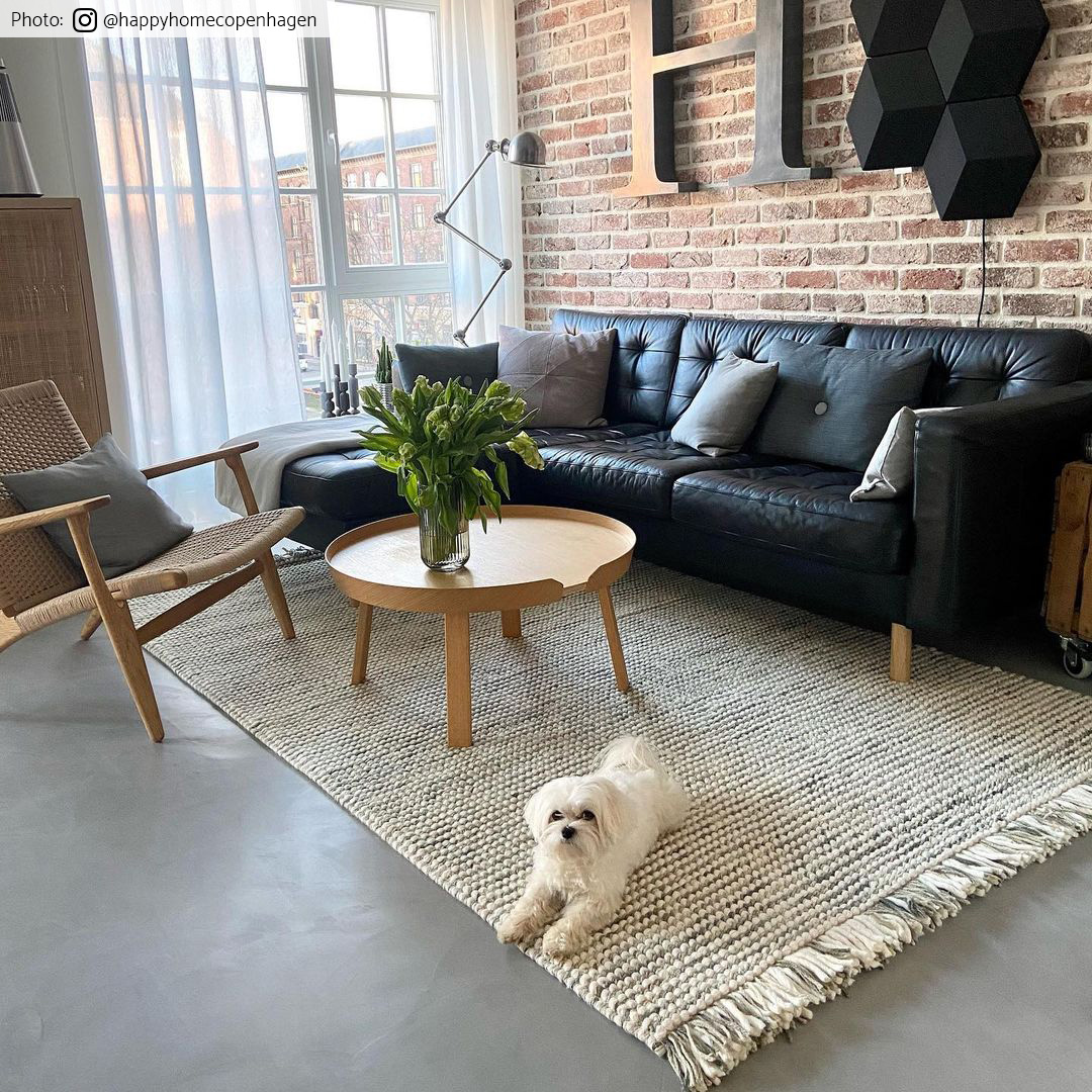 Flach gewebter Teppich aus Wolle. Wollteppich mit einem dünnen und schönen Schnitt. Einzigartige Qualität. Leicht zu bewegen. Liegt fixiert und flach auf dem Boden. Vermittelt ein Gefühl der Herkunft.