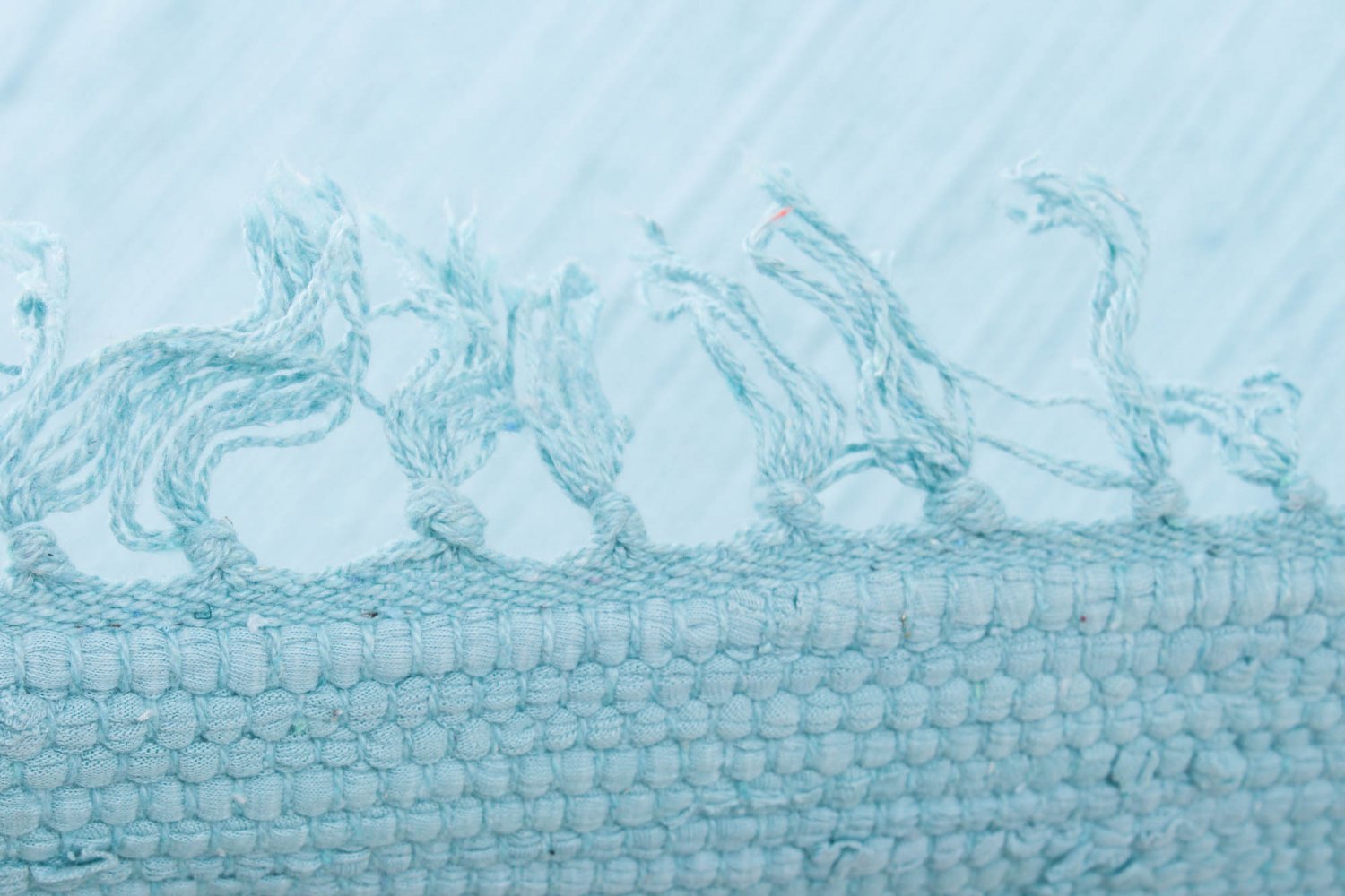 Der Flickenteppich Silje ist ein hochwertiger einfarbiger Flickenteppich, hier in der Farbe Blau/Türkis. Die Farben in der Serie Silje sind klar, kräftig und eigenständig. Ein einfacher, aber sehr schöner Flickenteppich mit Fransen. Er schafft nicht nur eine wohnliche Atmosphäre im Raum, sondern ist auch leicht zu reinigen, was Silje zu einem sehr praktischen Teppich macht.