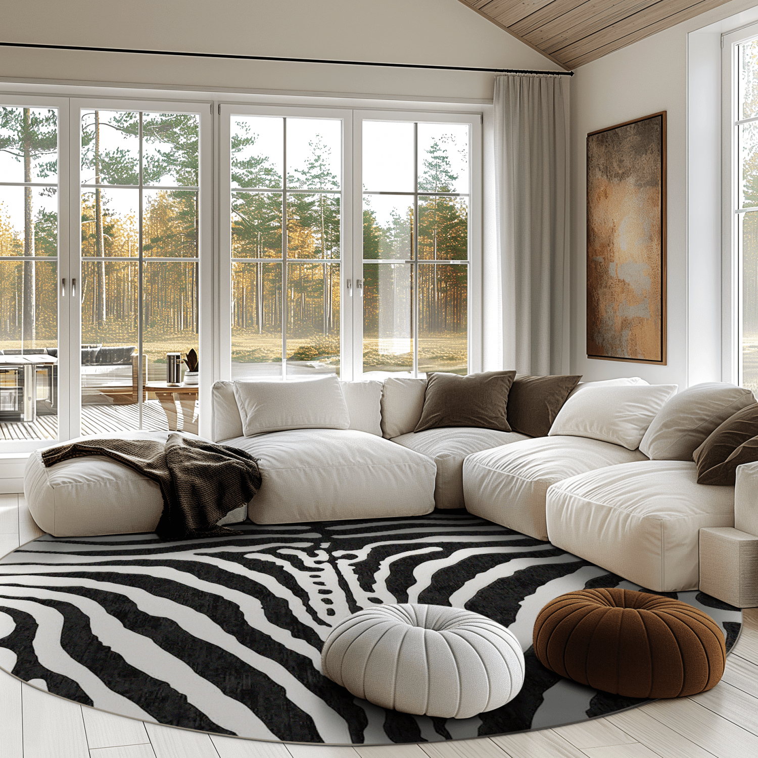 Rund Teppich - Zebra (schwarz/weiß)
