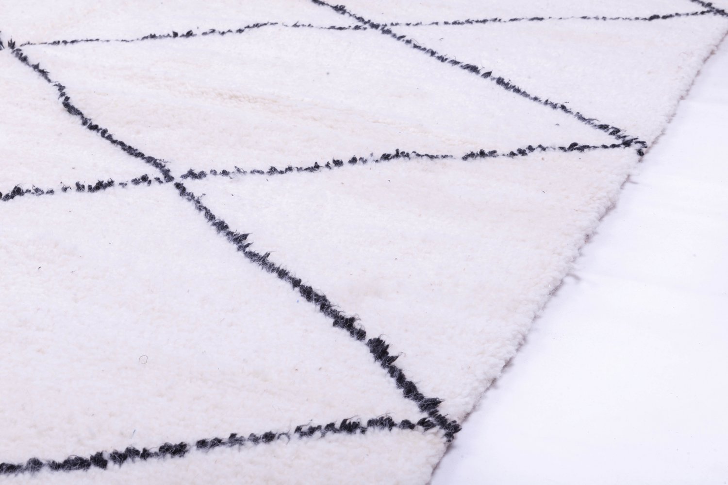 Die Wolle der Schafe im Atlasgebirge ist einfach unvergleichlich. Ein Beni Ourain-Teppich wird nur aus dieser Wolle und ihren natürlichen Farben hergestellt. Ein echter Beni Ourain-Teppich wird mit einfachen, raffinierten Mustern gewebt. Er ist bei Designern und Verbrauchern auf der ganzen Welt sehr gefragt. Ein echter Beni Ourain ist ein Kunstwerk für den Boden. Bei richtiger Pflege behält der Teppich seine schönen Farben und die Wolle nutzt sich nicht ab. Ein Teppich, der von Generation zu Generation weitergegeben wird.