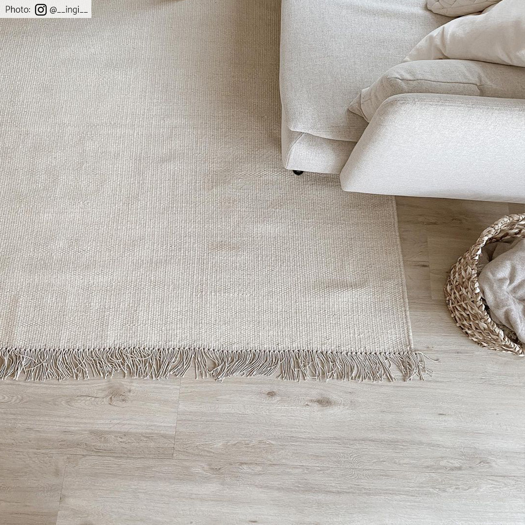 Flach gewebter Teppich aus Wolle. Wollteppich mit einem dünnen und schönen Schnitt. Einzigartige Qualität. Leicht zu bewegen. Liegt fixiert und flach auf dem Boden. Vermittelt ein Gefühl der Herkunft.