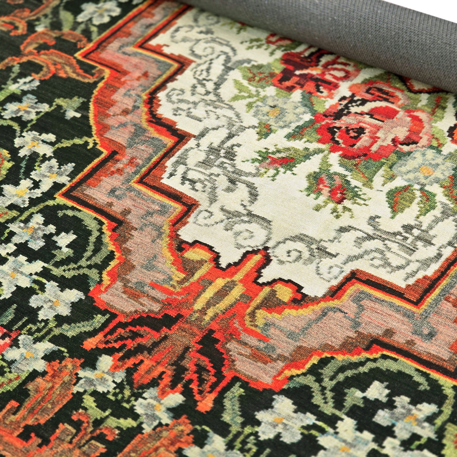 Schaffen Sie ein zeitloses Ambiente in Ihrem Zuhause mit diesem flachgewebten Teppich im eleganten Vintage-Stil. Das strapazierfähige und dünne Design macht den Teppich leicht zu platzieren und einfach zu pflegen, während das schön gealterte Muster dem Raum Wärme und Charakter verleiht. Perfekt unter dem Esstisch, im Wohnzimmer oder im Flur – ein Teppich, der praktische Funktion mit klassischem Design verbindet.