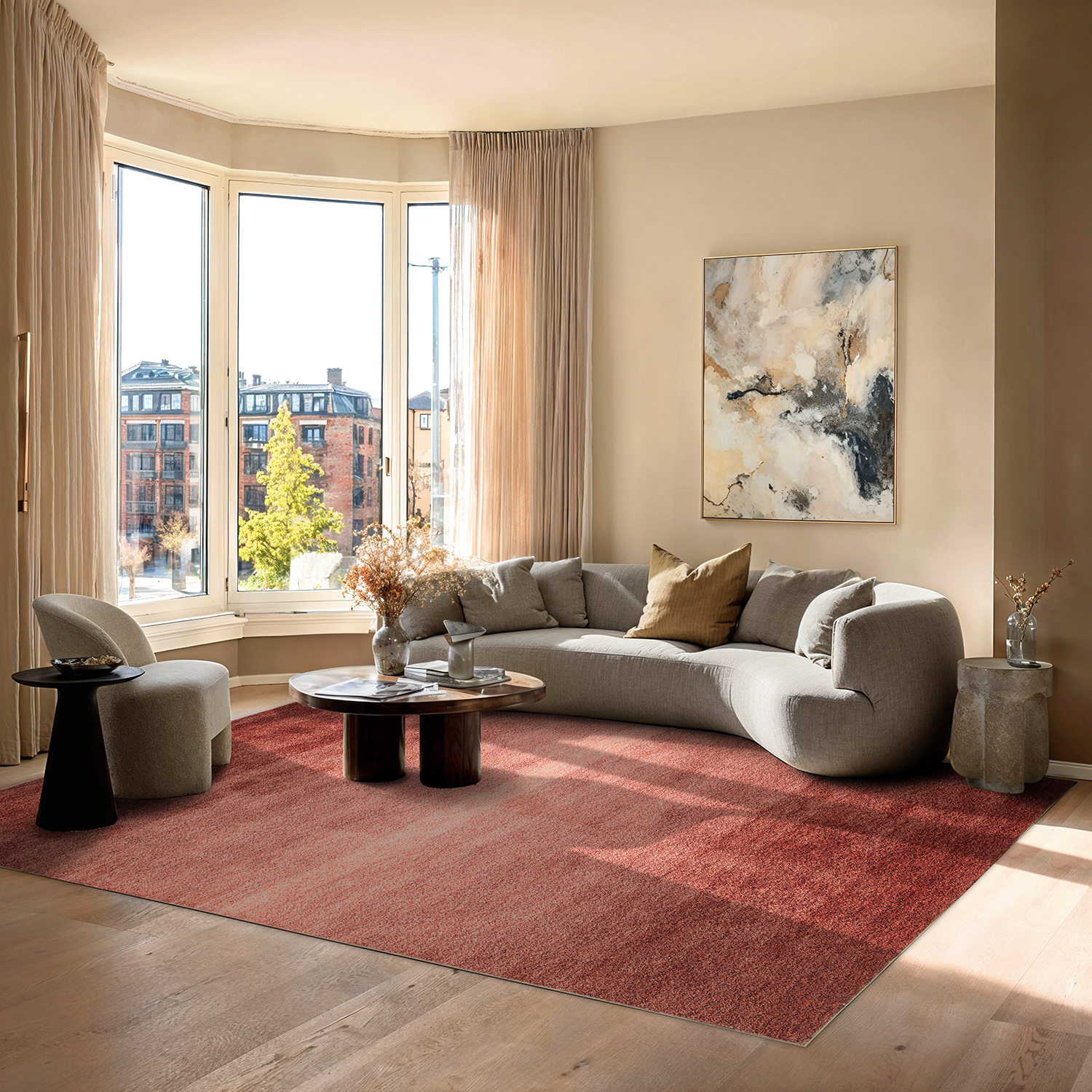 Moderner Teppich aus der Trendcarpet Art Line – jetzt in einer verbesserten Version mit zusätzlicher Dicke und höherem Gewicht, was für ein weicheres und solideres Gefühl unter den Füßen sorgt. Perfekt als Wohnzimmerteppich oder in einem anderen Raum, in dem er Akzente setzen und das Interieur aufwerten kann.