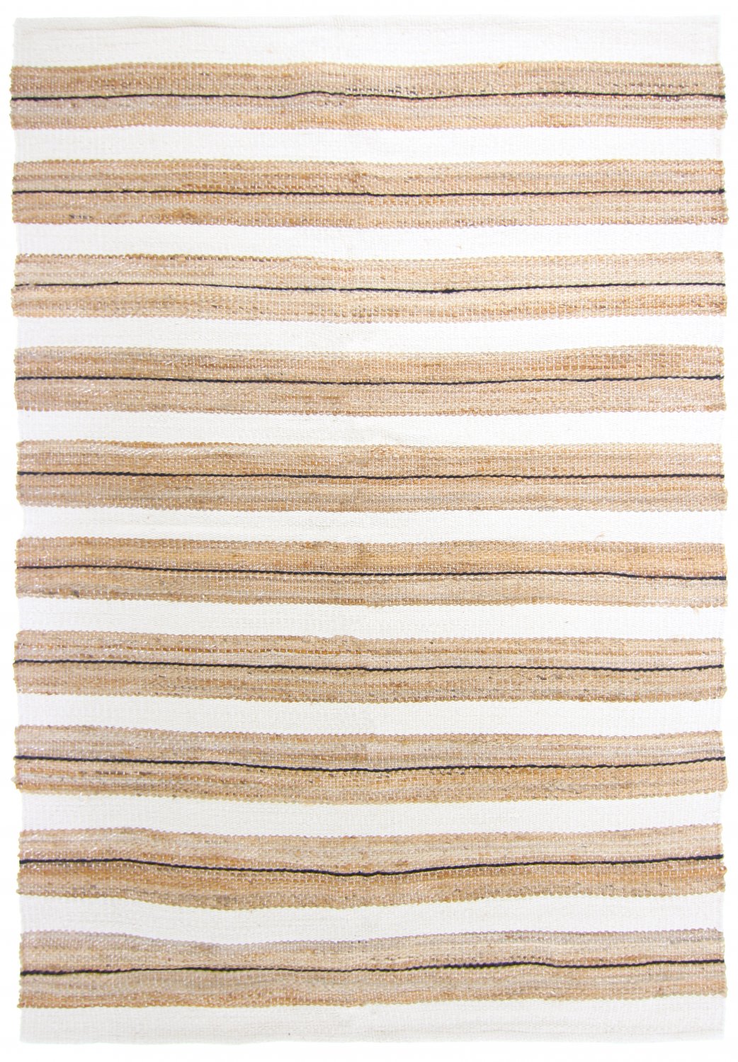 Der Streifenteppich Devli in den Farben Beige, Weiß und Schwarz. Dank des neutralen Aussehens des Teppichs lässt er sich leicht mit jeder Inneneinrichtung kombinieren. Der Teppich schafft eine wohnliche Atmosphäre im Raum und ist leicht zu reinigen, was Devli zu einem sehr praktischen Teppich macht.