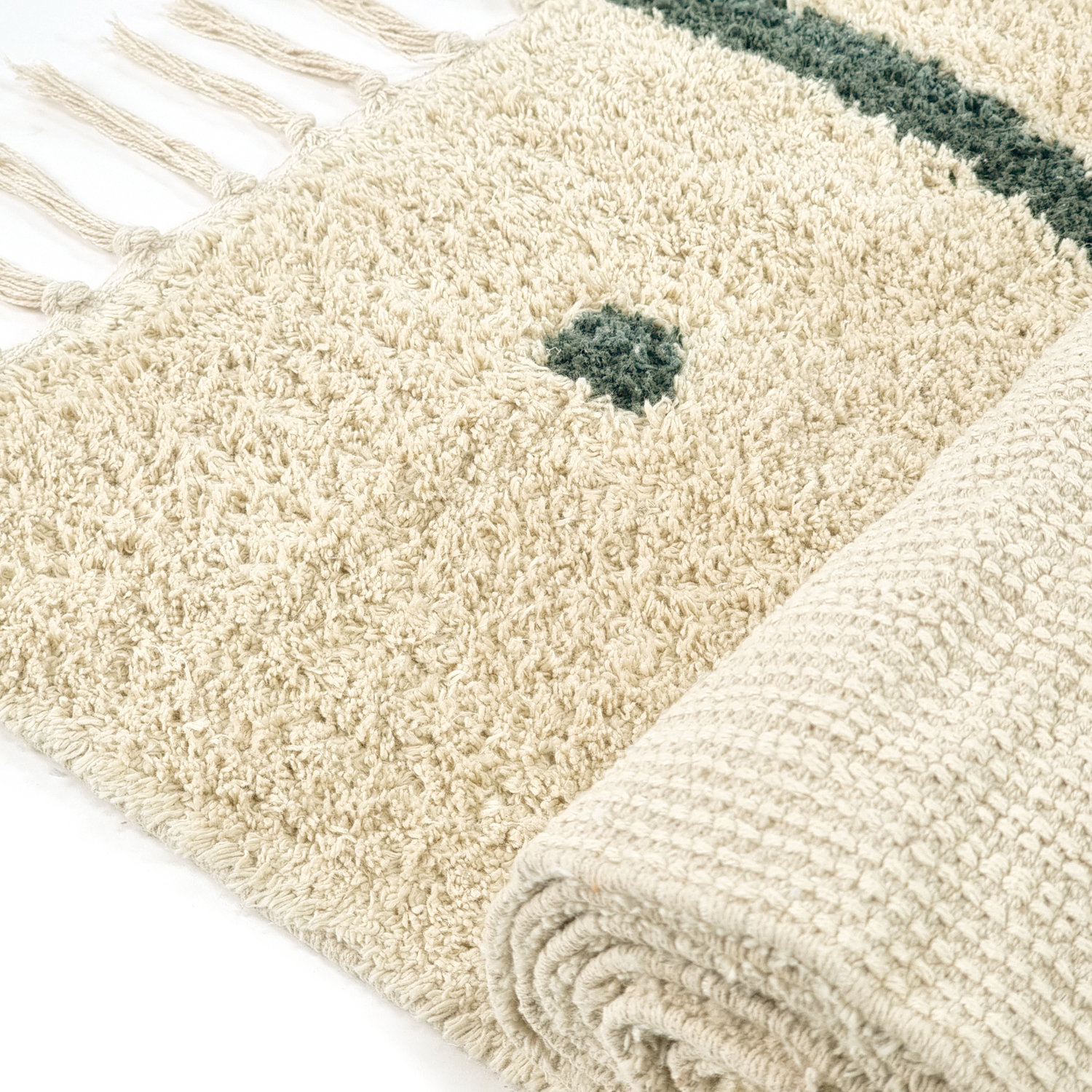 Handgewebter Teppich aus 100% Baumwolle. Unsere Baumwollteppiche bieten natürlichen Komfort, zeitloses Design und Langlebigkeit in einem.