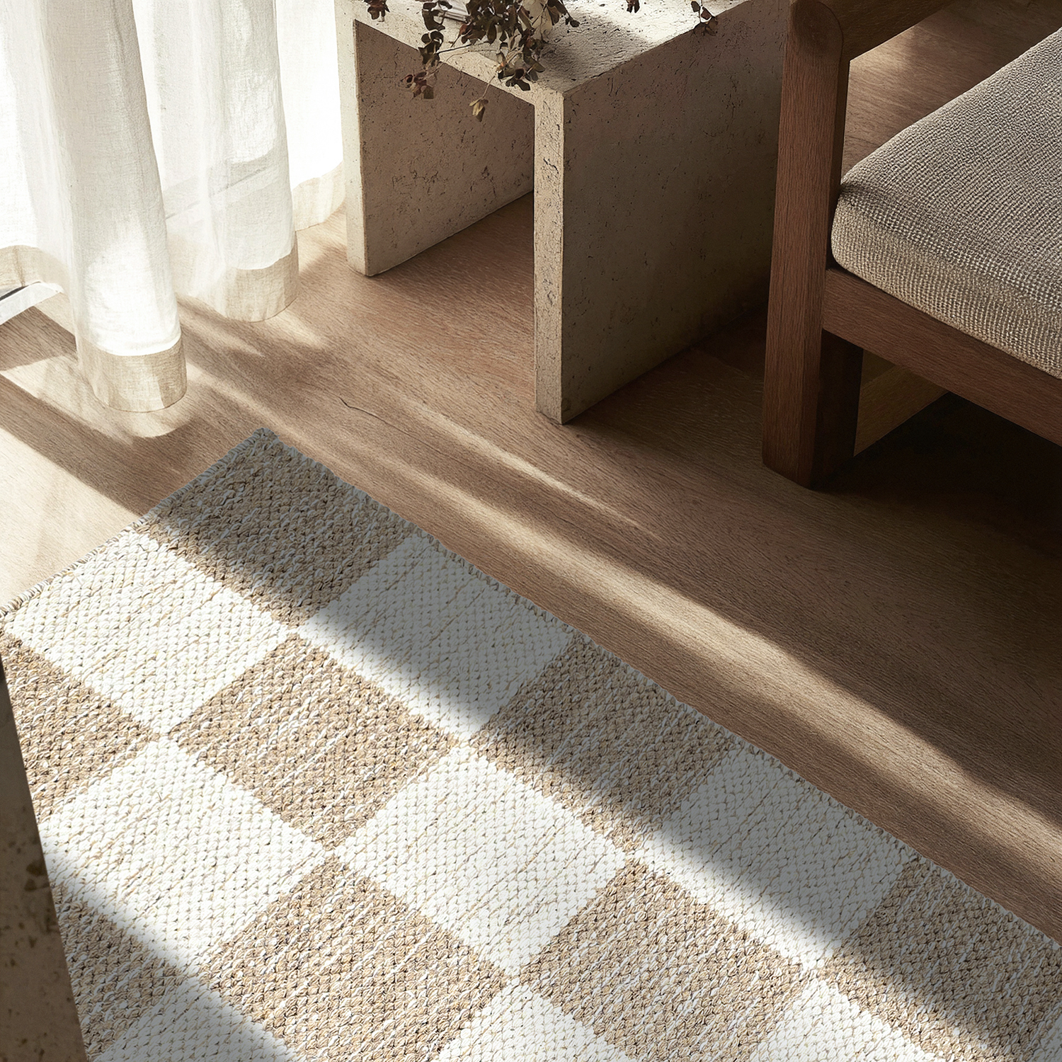Ein handgewebter Wollteppich mit zeitlosem Karomuster, der eine ruhige und harmonische Atmosphäre schafft. Gefertigt aus strapazierfähiger Wolle, die von Natur aus schmutzabweisend und angenehm zu begehen ist. Die dichte Webart macht ihn robust und geeignet für Wohnzimmer, Schlafzimmer, Esszimmer und Flur. Ein vielseitiger Teppich, der Funktionalität, Qualität und klassisches Design vereint.