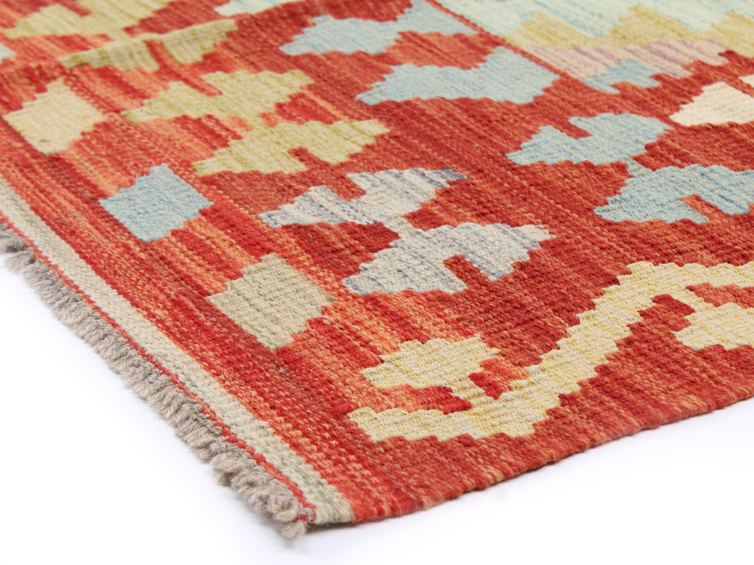 Orientalische Kelim‑Teppiche verbinden eine flachgewebte Struktur mit natürlicher Wolle – leicht, flexibel und einfach unter Tischen, in Fluren oder im Wohnzimmer zu platzieren. Das schlanke Profil eignet sich hervorragend zum Layering über größeren Teppichen.