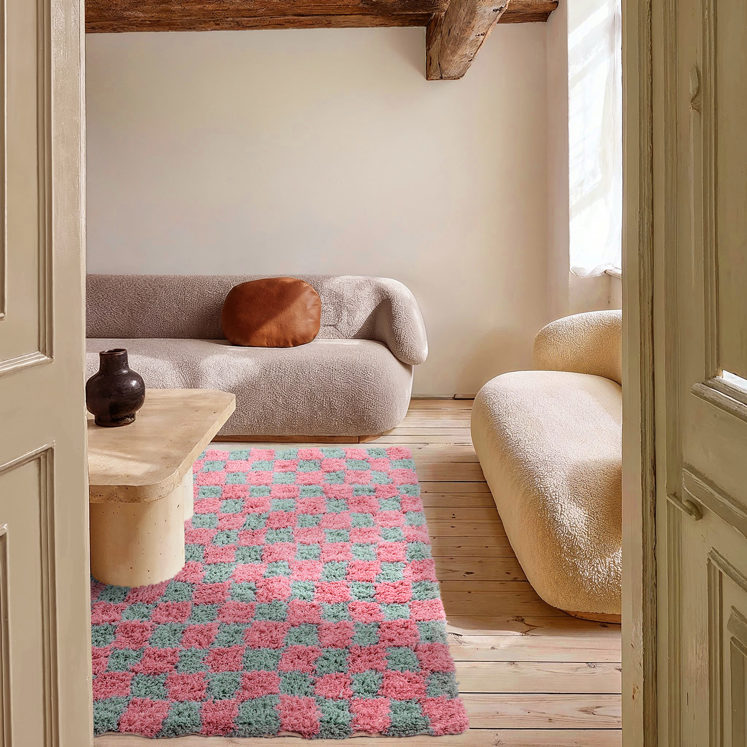Dieser karierte Hochflorteppich vereint zeitloses Design mit einem weichen und angenehmen Material, das eine warme und einladende Atmosphäre schafft. Der dichte Flor ist besonders komfortabel, während das Karomuster dem Raum Struktur und Charakter verleiht. Ideal für Wohn- und Schlafzimmer.