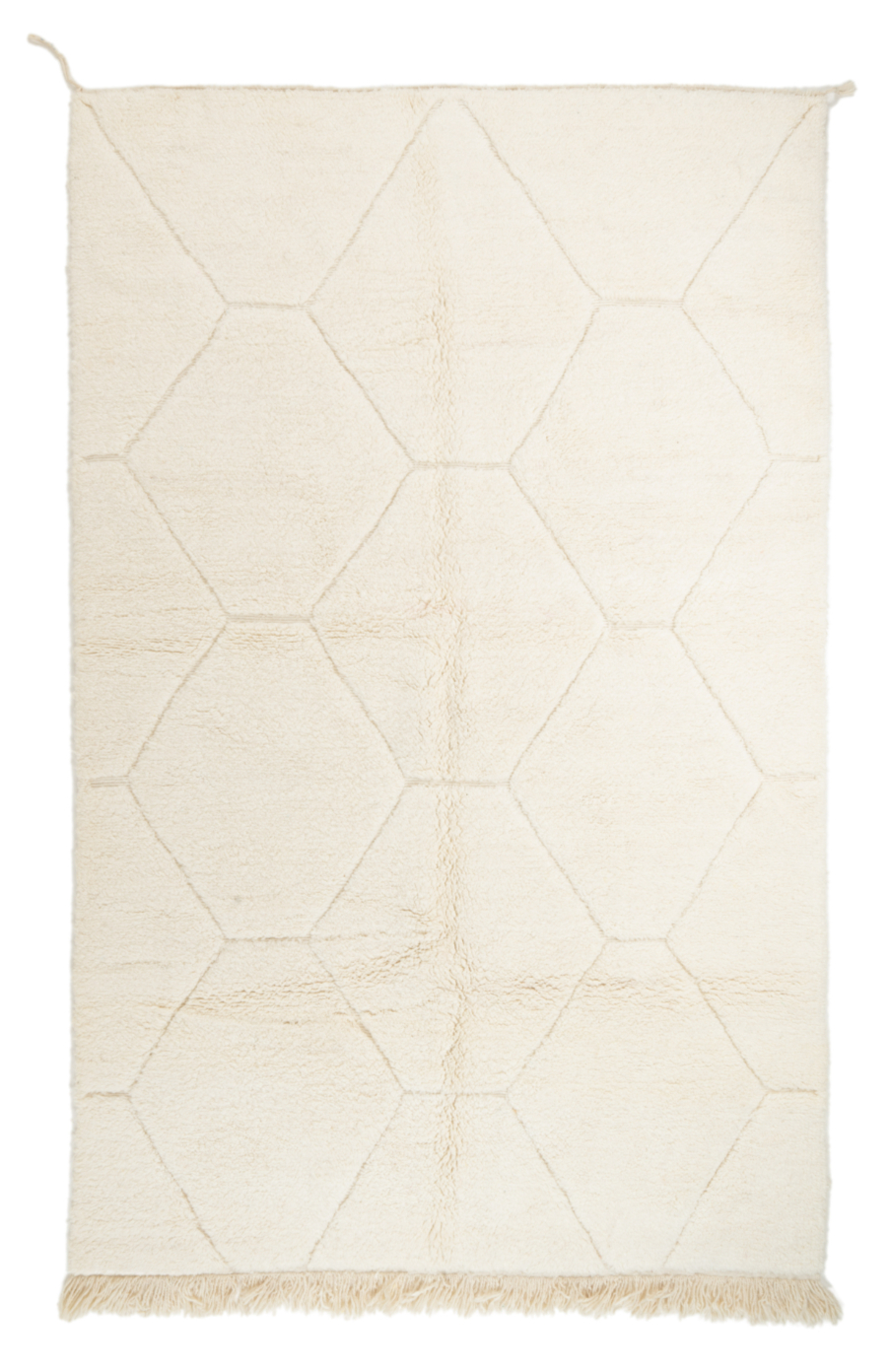 Die Wolle der Schafe im Atlasgebirge ist einfach unvergleichlich. Ein Beni Ourain-Teppich wird nur aus dieser Wolle und ihren natürlichen Farben hergestellt. Ein echter Beni Ourain-Teppich wird mit einfachen, raffinierten Mustern gewebt. Er ist bei Designern und Verbrauchern auf der ganzen Welt sehr gefragt. Ein echter Beni Ourain ist ein Kunstwerk für den Boden. Bei richtiger Pflege behält der Teppich seine schönen Farben und die Wolle nutzt sich nicht ab. Ein Teppich, der von Generation zu Generation weitergegeben wird.