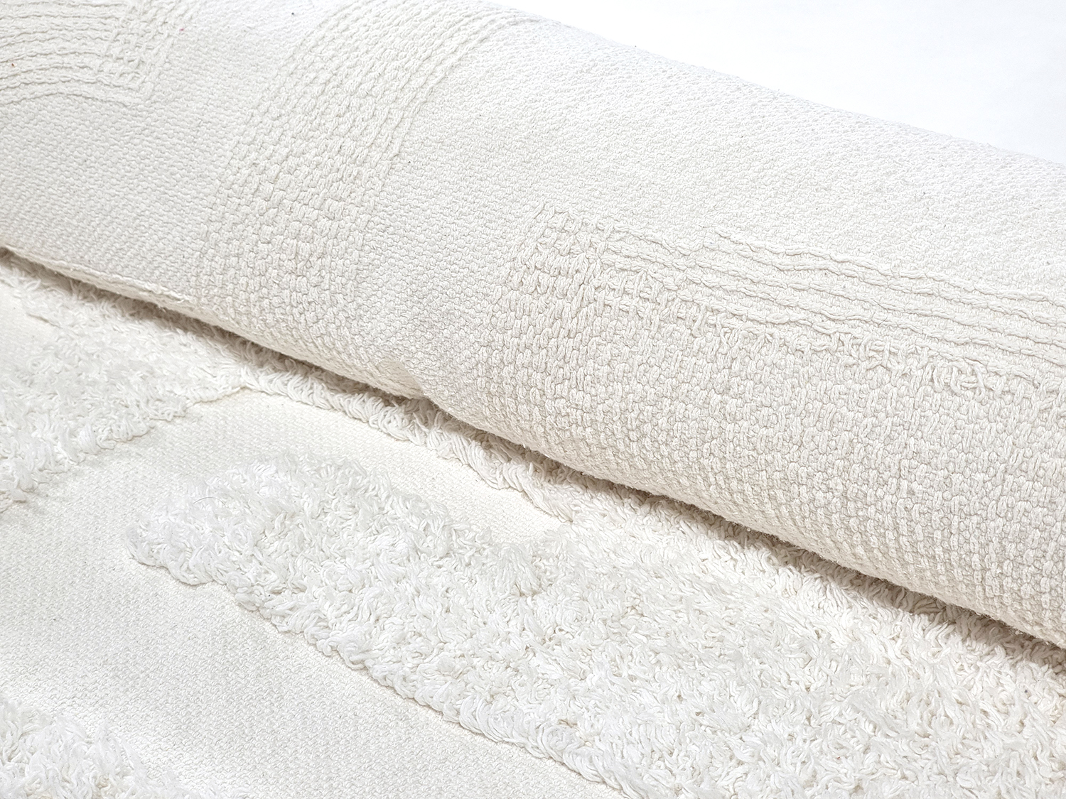 Notre tapis à poils longs en 100 % coton allie la douceur naturelle à la durabilité, ce qui en fait le choix idéal pour ceux qui recherchent confort et style dans un seul produit.