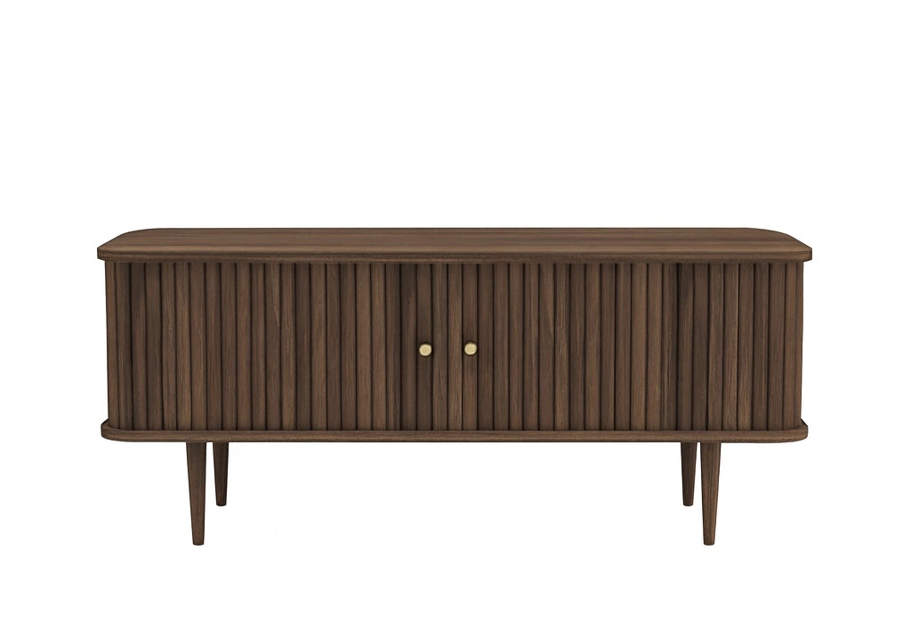 Dale a tu hogar un toque elegante con esta mesa auxiliar en un bonito tono nogal. Fabricada en MDF resistente con chapa natural de nogal, ofrece un aspecto de alta calidad y atemporal. La mesa cuenta con prácticas puertas correderas de listones de MDF con chapa de nogal que envuelven el mueble de forma elegante, creando un diseño único. Las robustas patas de roble macizo, junto con un discreto soporte trasero, garantizan estabilidad y aportan una sensación natural.